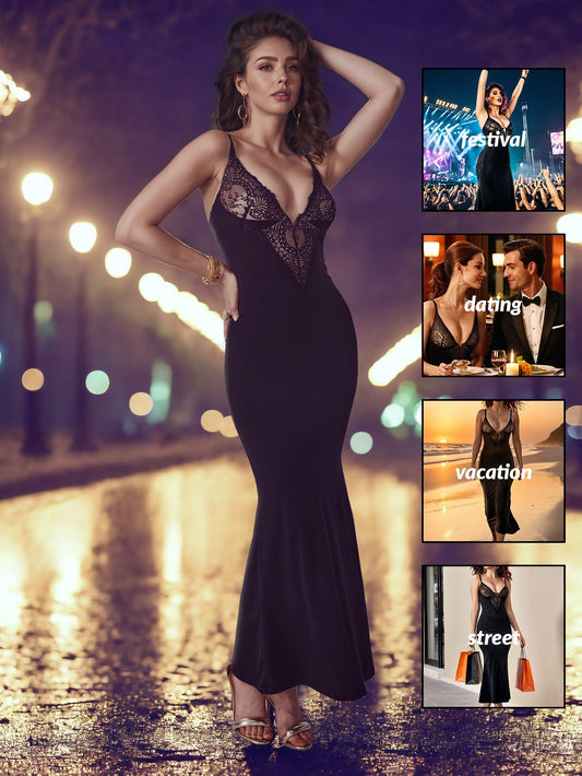 Deep-V Sleeveless Lace Split Mermaid Shapewear Dress