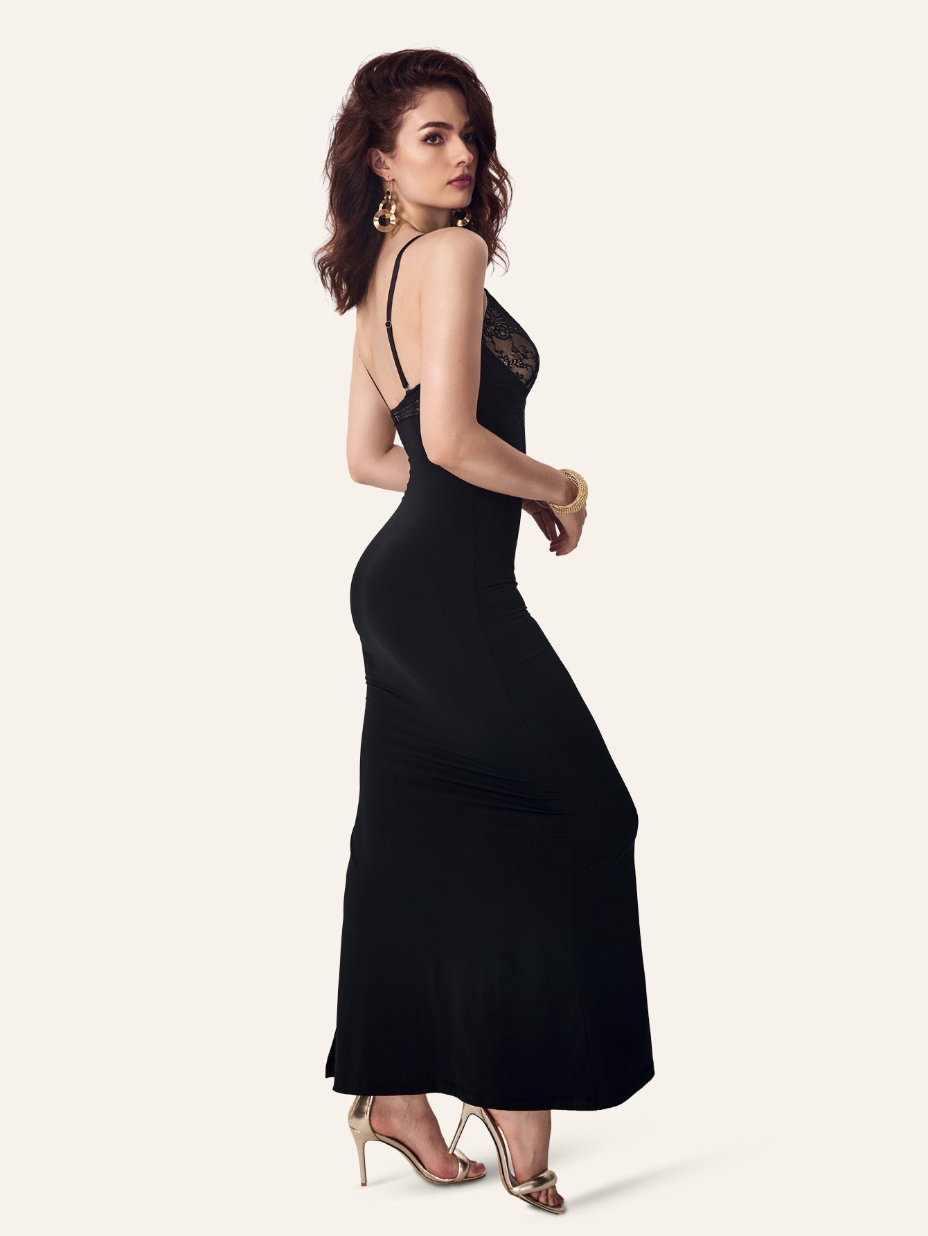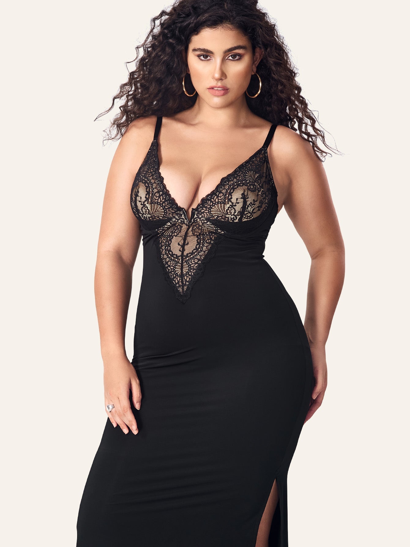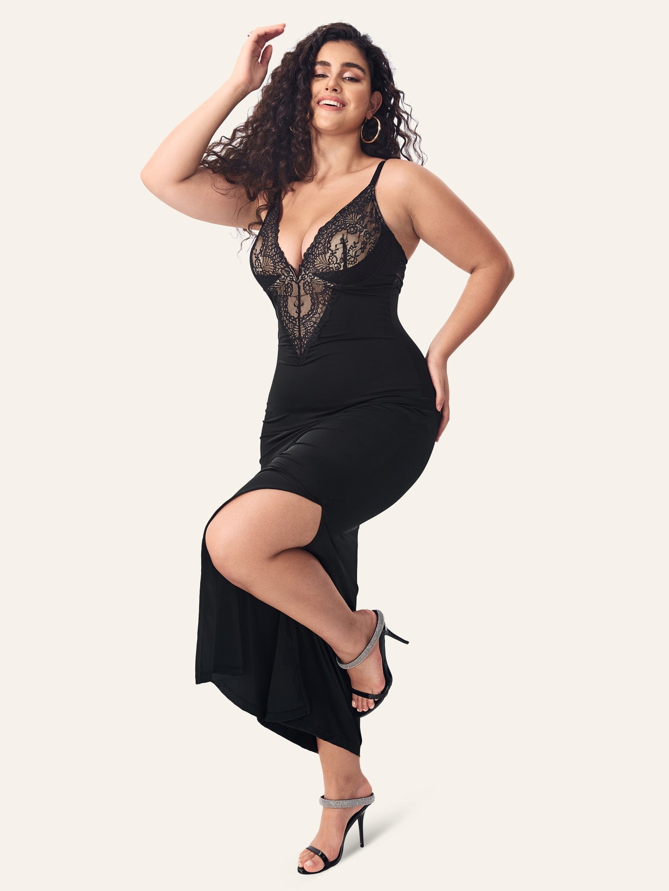 Deep-V Sleeveless Lace Split Mermaid Shapewear Dress